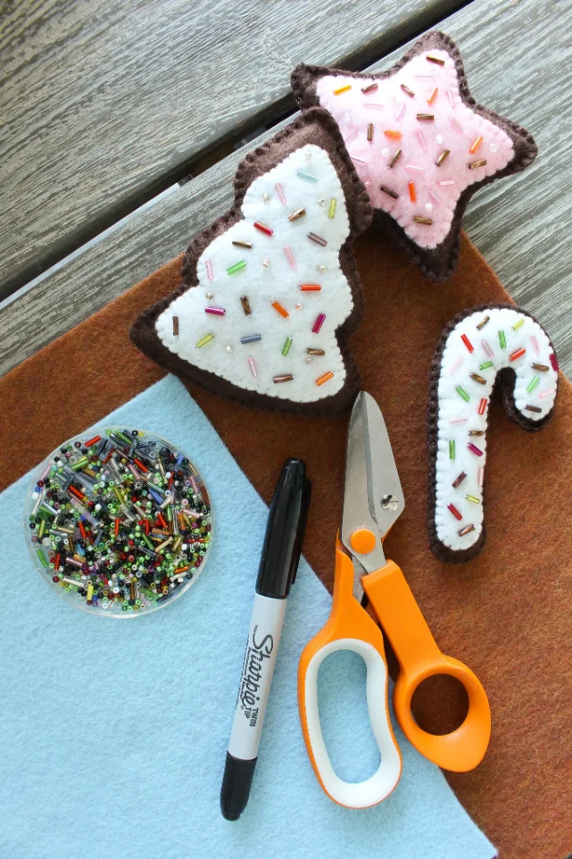Use the templates to cut perfect shapes, stitch them together, and decorate them as creatively (or wildly!) as you want. Add beads, embroidery, felt icing — go full cookie-artist mode. Your tree will thank you. 🍬🌟